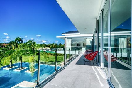Una impresionante y fabulosa villa en la mejor zona de Cap Cana, con una construcción de 831.80 M2 sobre un terreno 2035.30mt2. Cercana a Campo de golf Punta Espada y a la playa de Juanillo, la espectacular villa de 2 niveles con diseño moderno y terminaciones Premium, amplio jardín que rodea la casa, es ideal para vivir en familia o para renta vacacional.